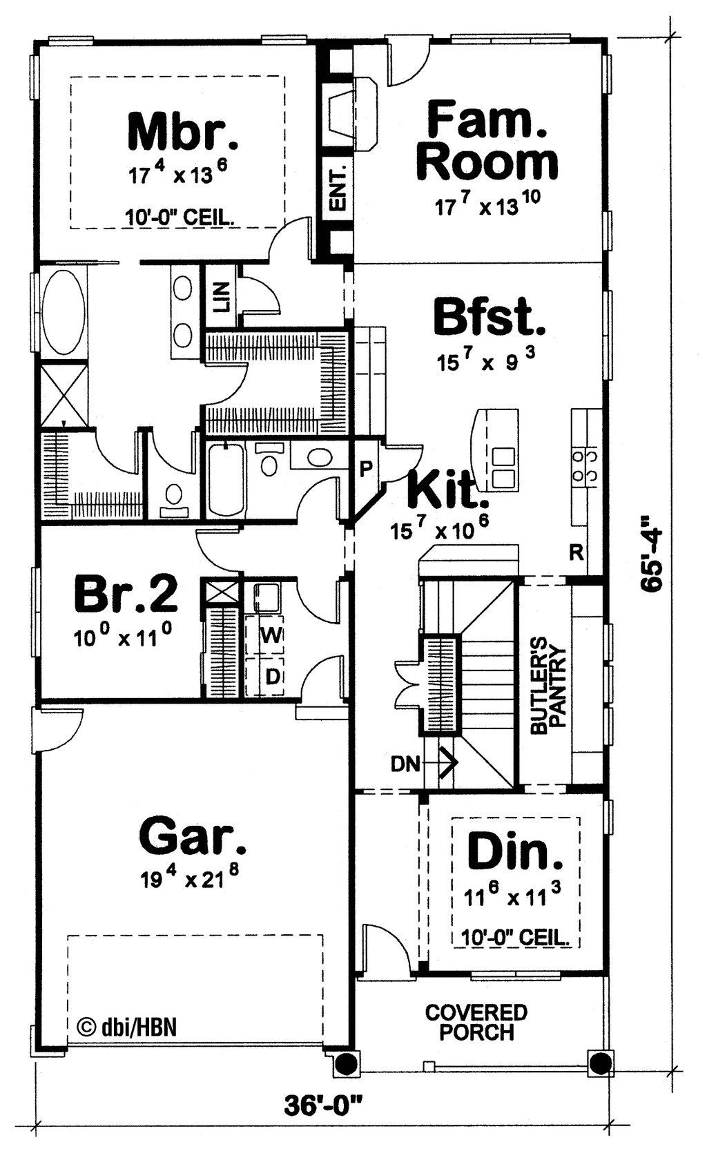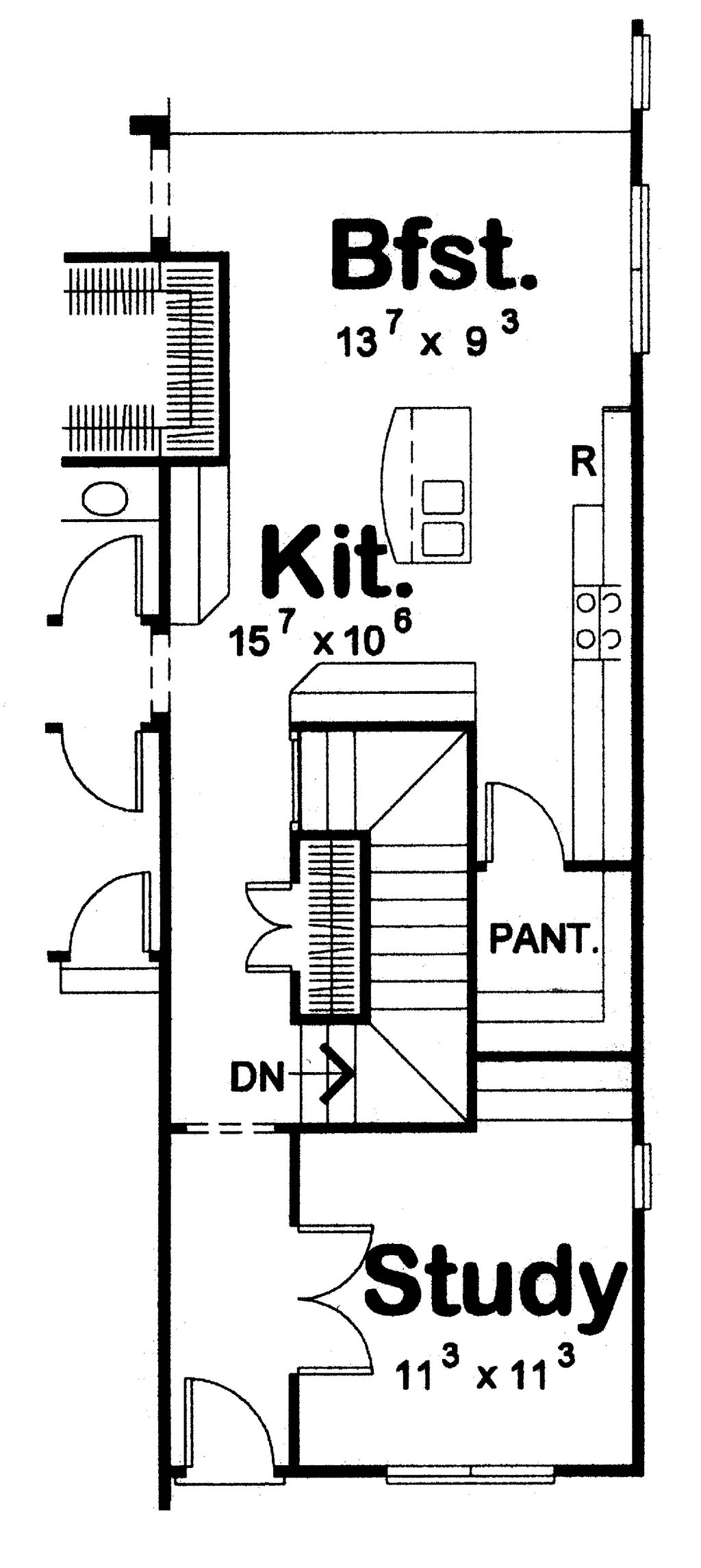 - Floor Plan(s): 1/4" scale. Fully dimensioned from stud to stud for ease of framing. The detailed drawings include such things as structural header locations, framing layout and kitchen layout.