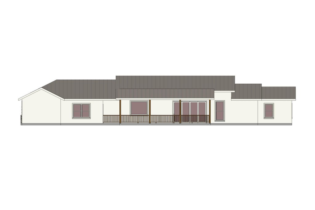 - Exterior Elevations: Views of the home from all four sides showing exterior materials, roof slope, ridge heights, siding and trim notes.