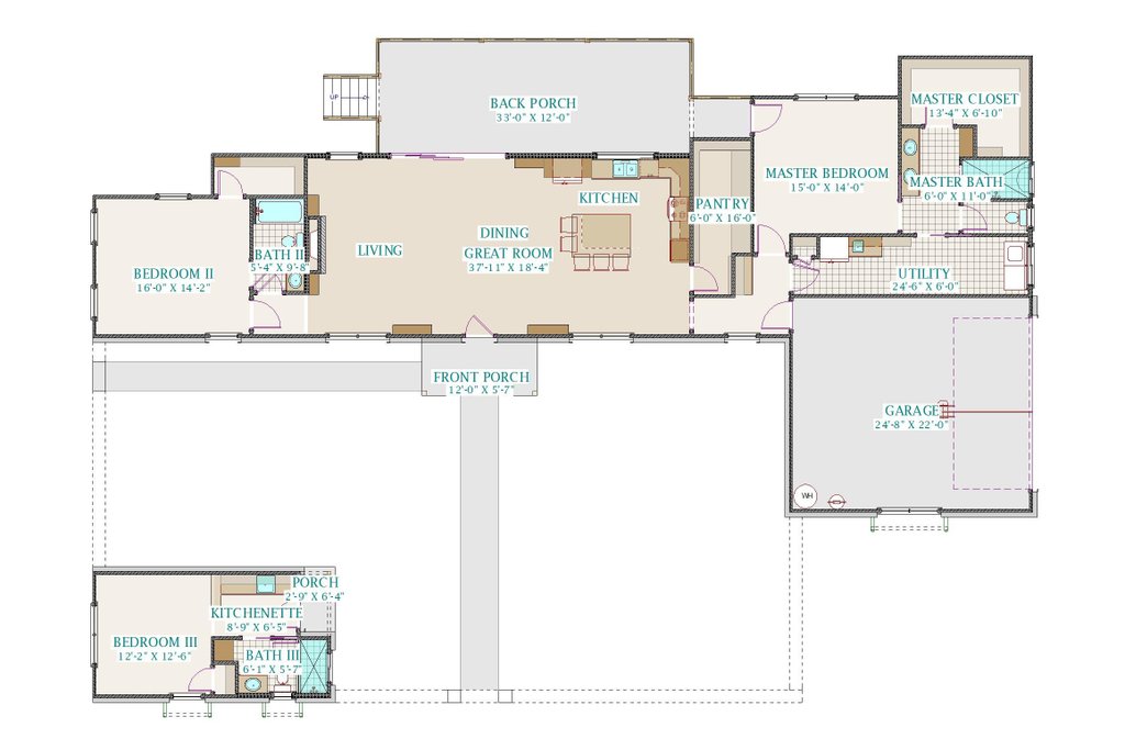 - Foundation Plan(s): This page shows all necessary notations and dimensions including footings, support columns, walls, and excavated/unexcavated areas.
