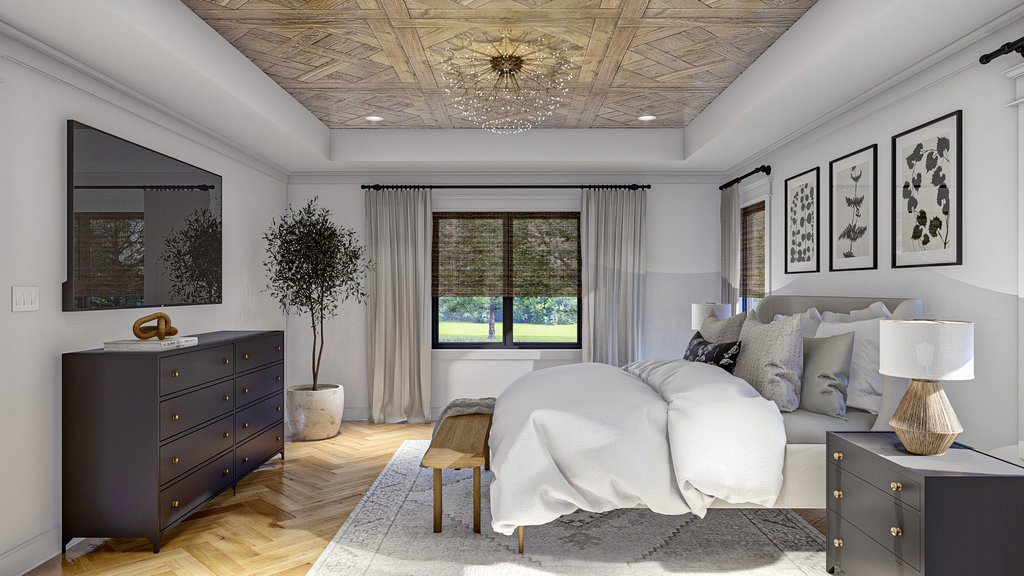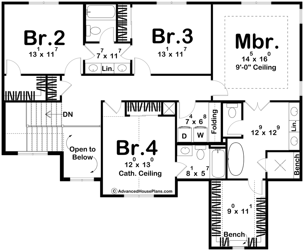 Ceiling Details : The entry features a 2 story ceiling. The master bedroom has a 9'-0" ceiling. Bedroom 4 features a cathedral ceiling.