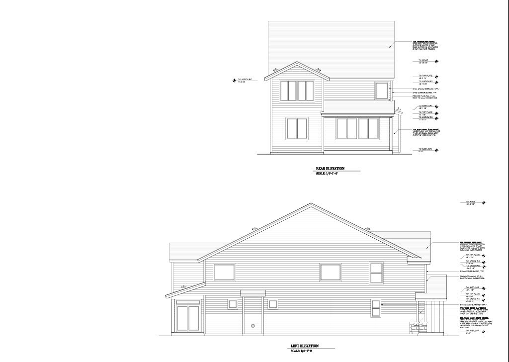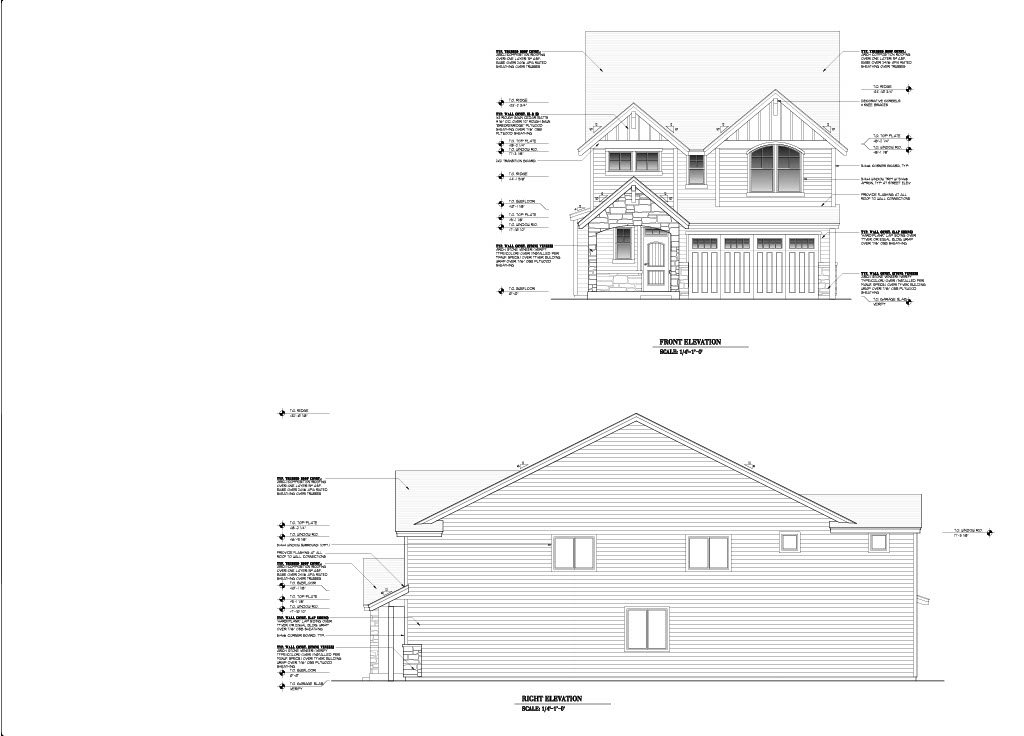 - Exterior Elevations: A blueprint picture of all four sides showing exterior materials and measurements.