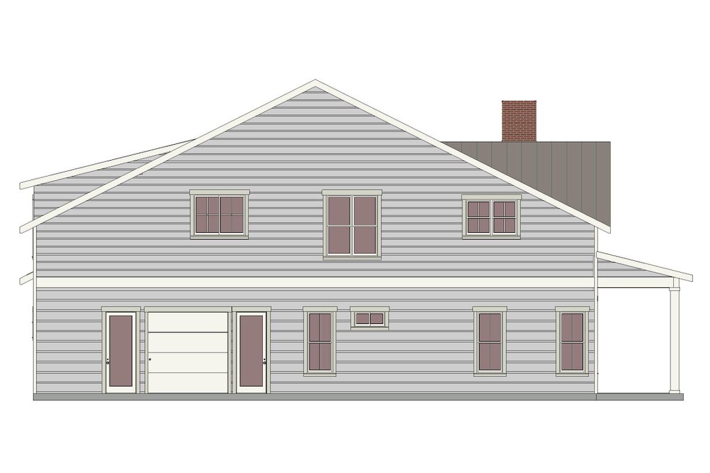 - Exterior Elevations: Views of the home from all four sides showing exterior materials, roof slope, ridge heights, siding and trim notes.