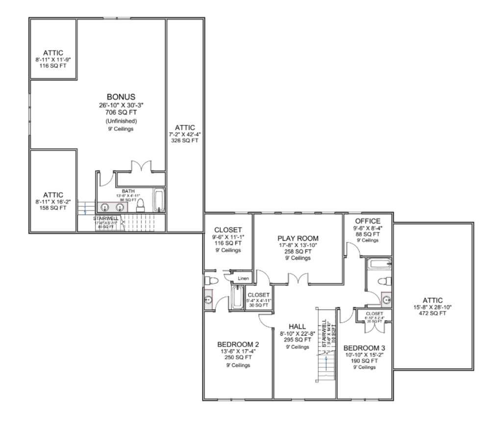 * Total Square Footage typically only includes conditioned space and does not include garages, porches, bonus rooms, or decks.
