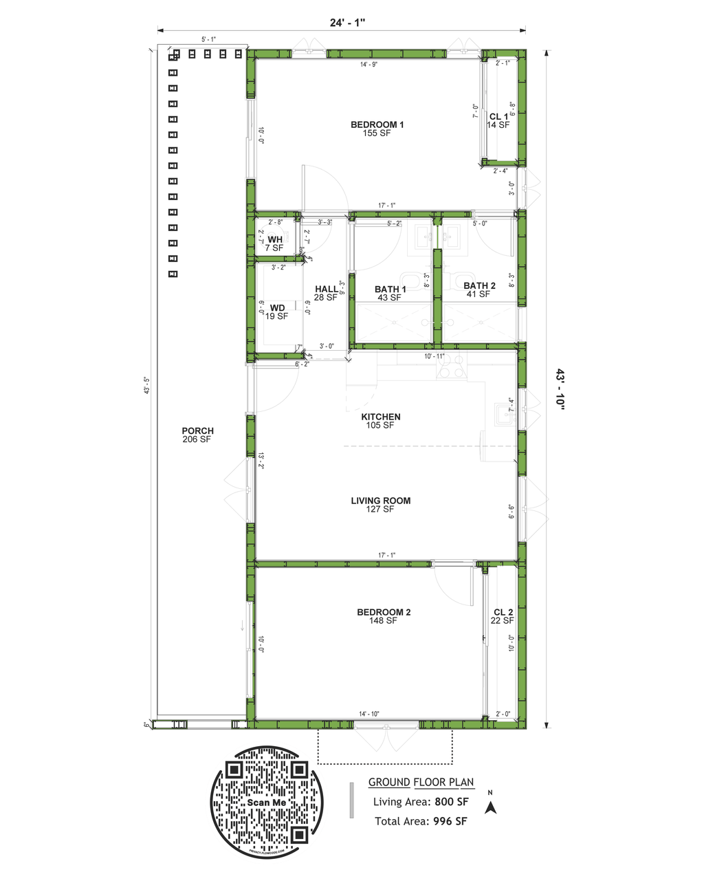 - Exterior Elevations: Views of the home from all four sides showing exterior materials and measurements.